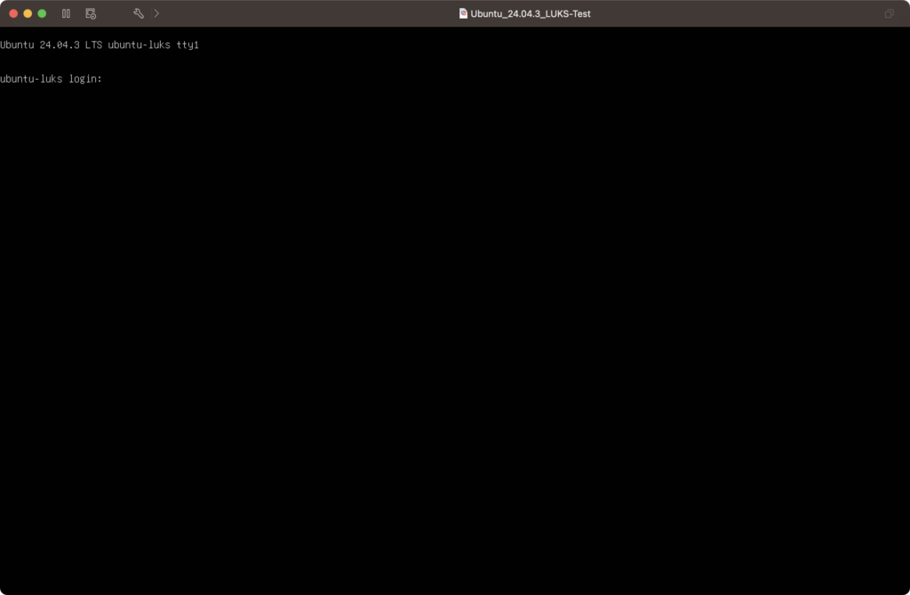 Nach Ausführung des Befehls ist der LUKS-Header nicht mehr konsistent. Eine Erkennung oder Öffnung des Containers ist nicht mehr möglich. Das System wird anschließend neu gestartet, um das resultierende Bootverhalten zu analysieren.